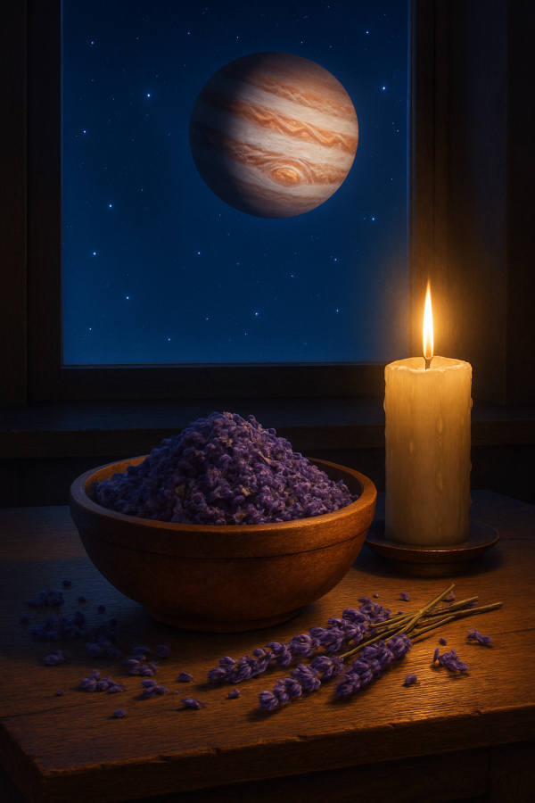 When aligned with Jupiter’s energy of good luck, prosperity, good fortune, and growth, lavender’s calming and balancing nature becomes a powerful tool for attracting abundance and success. This alignment amplifies lavender’s inherent ability to bring clarity and focus, making it an ideal accompaniment in rituals or meditations centered on prosperity. Use lavender in spells or practices aimed at growth in personal ventures or financial realms, as it enhances positivity while nurturing one’s journey toward greater abundance.