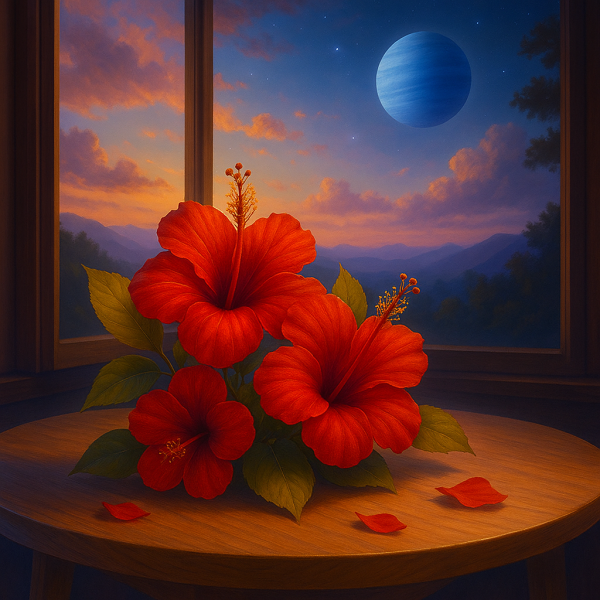 Because of this rich energetic complexity, hibiscus resonates with the full spectrum of planetary forces. Each planet, from the warmth of the Sun to the distant mysteries of Pluto and the dwarf planets beyond, awakens a different dimension of hibiscus’s spirit. Under the Sun it becomes a wellspring of confidence and success; through Venus it embodies beauty and affection; with the Moon it softens into intuition and renewal. When woven into planetary ritual or contemplation, hibiscus acts as a living bridge between earthly emotion and celestial vibration—its energy shifting to reflect the nature of the planet it serves.