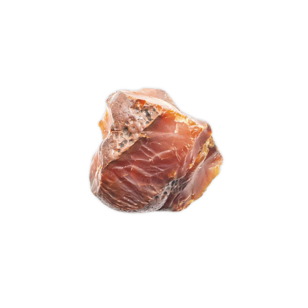 DESCRIPTION: This is a raw piece of Carnelian. A glassy, translucent stone, Carnelian is an orange-colored variety of Chalcedony, a mineral of the Quartz family. Its color varies from pale pinkish-orange to a deep rusty brown, though it is most known for its brilliant orange and red-orange crystals.