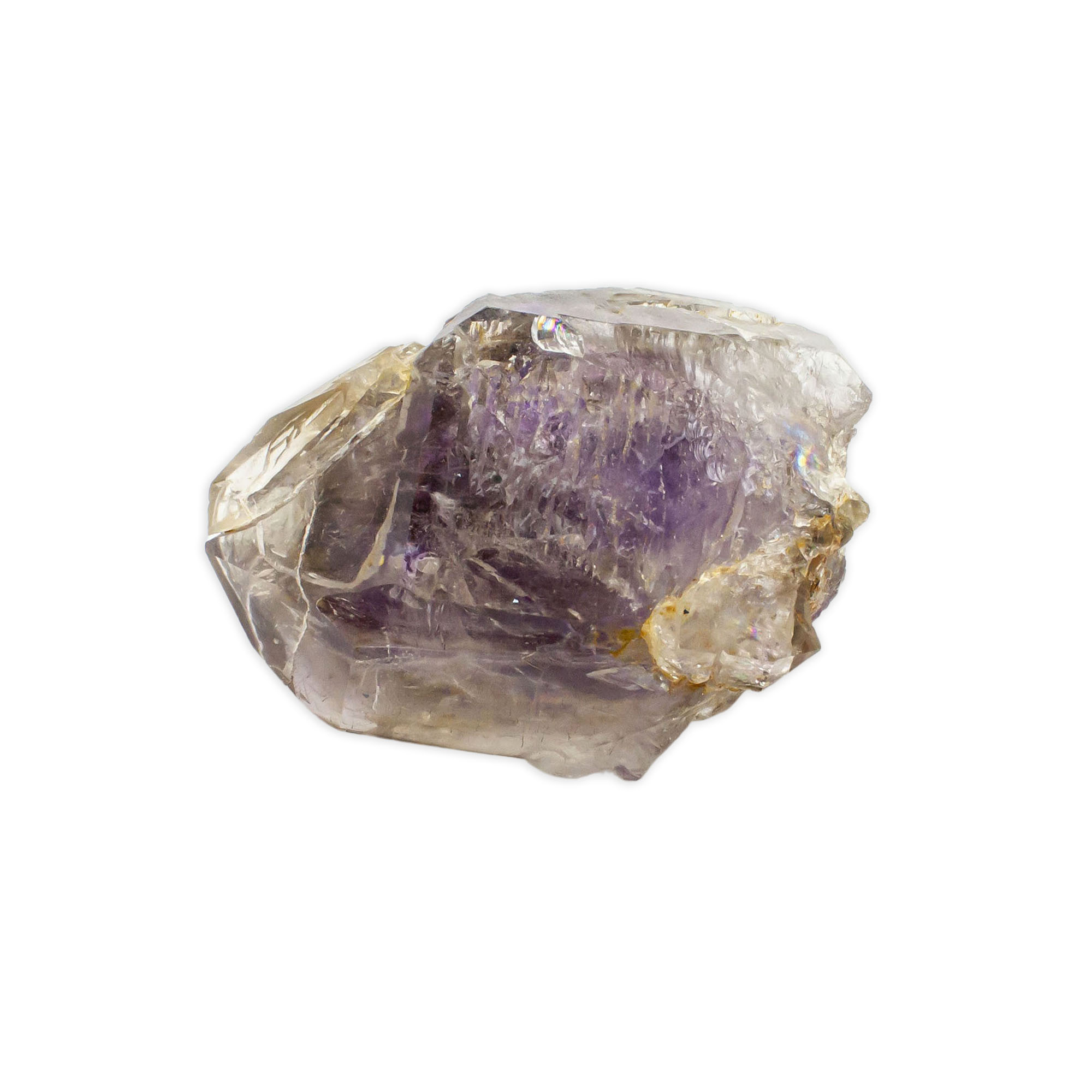 Description: Unique Brandberg Amethyst Crystal. Brandberg Amethyst is a high-energy mixture of clear quartz, amethyst, and smoky quartz only found in the Brandberg Mountains of Namibia. It is a swirling mix of colors, inclusions, sometimes enhydros, phantoms, and unusual formations.