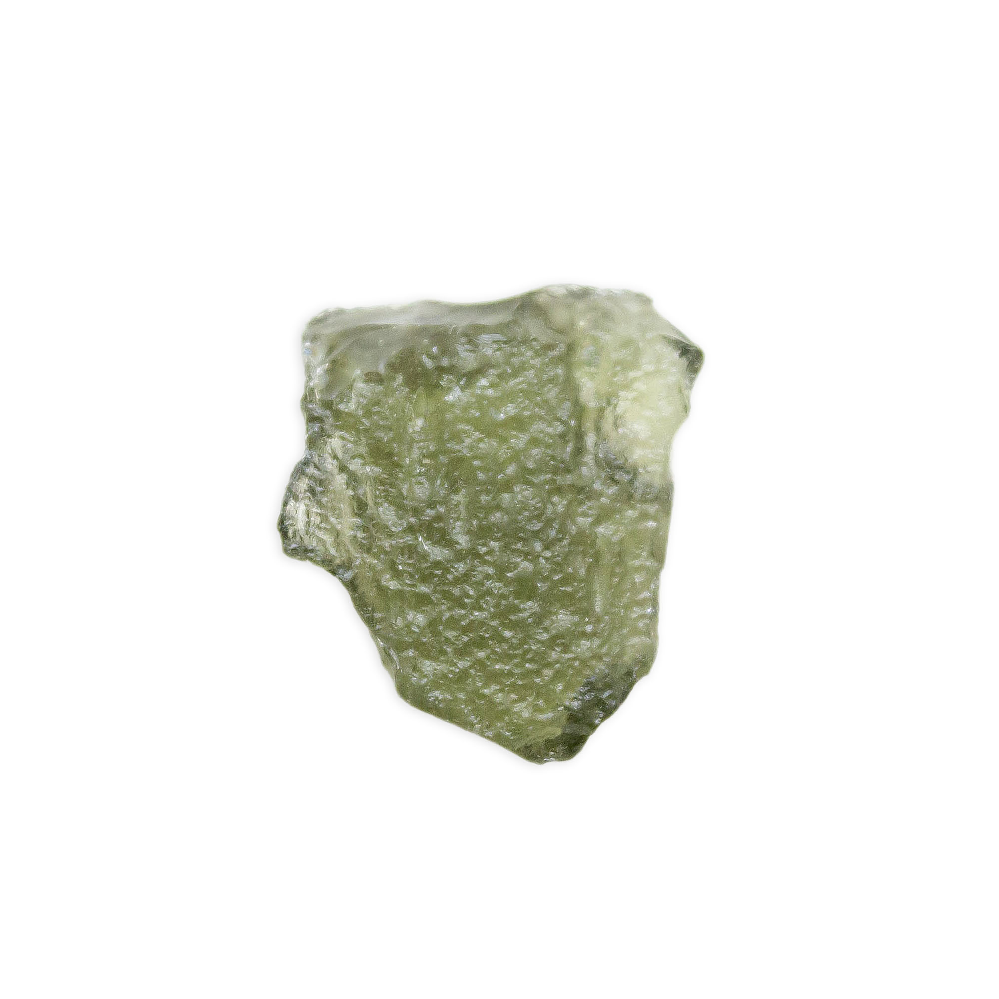 Description: Moldavite. Moldavite is a type of tektite, which is a natural glass that forms when a meteorite impacts the Earth’s surface. It is characterized by its unique green color, often described as a translucent or olive-green shade. It has a distinct, rough texture with natural ridges and indentations.