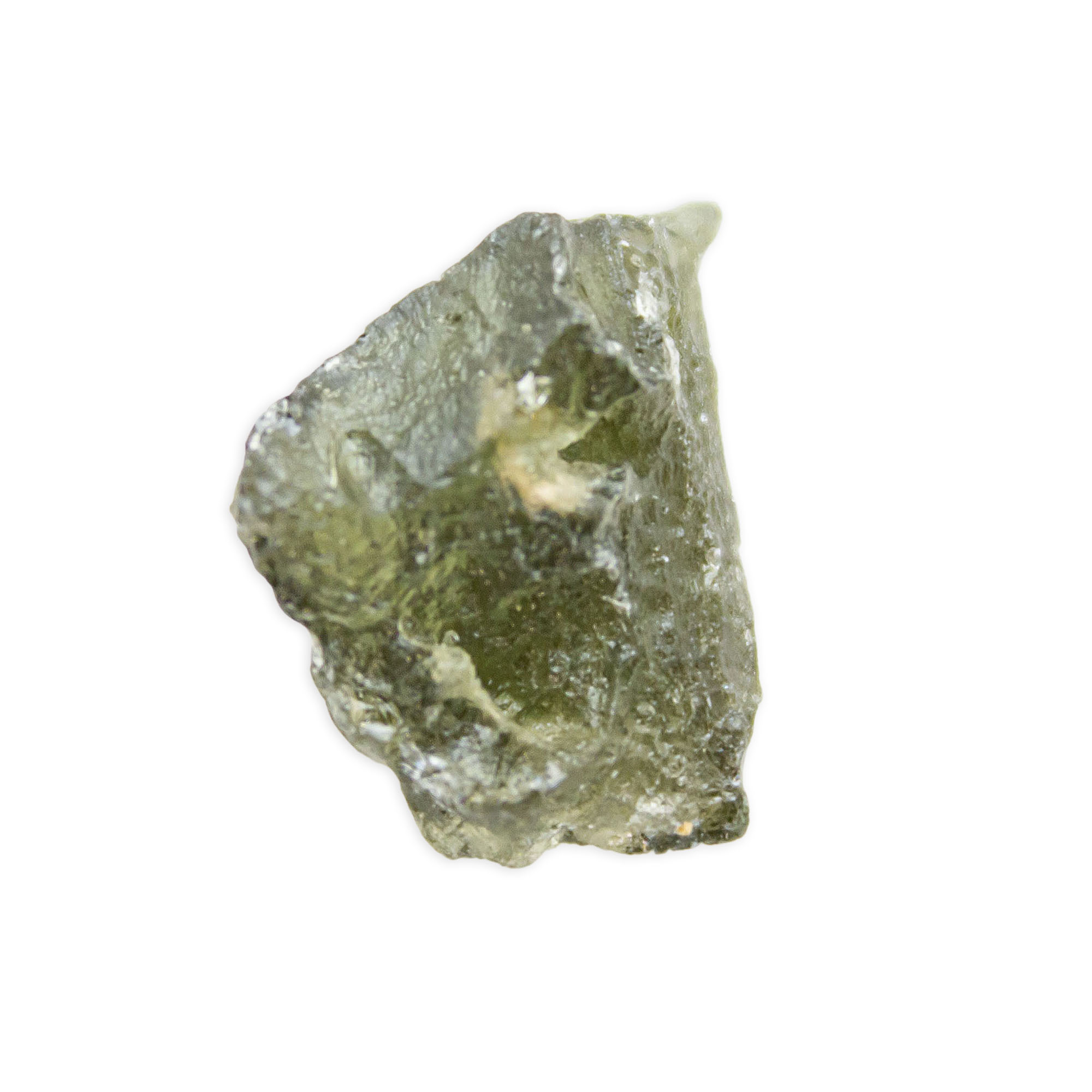 Description: Moldavite. Moldavite is a type of tektite, which is a natural glass that forms when a meteorite impacts the Earth’s surface. It is characterized by its unique green color, often described as a translucent or olive-green shade. It has a distinct, rough texture with natural ridges and indentations.