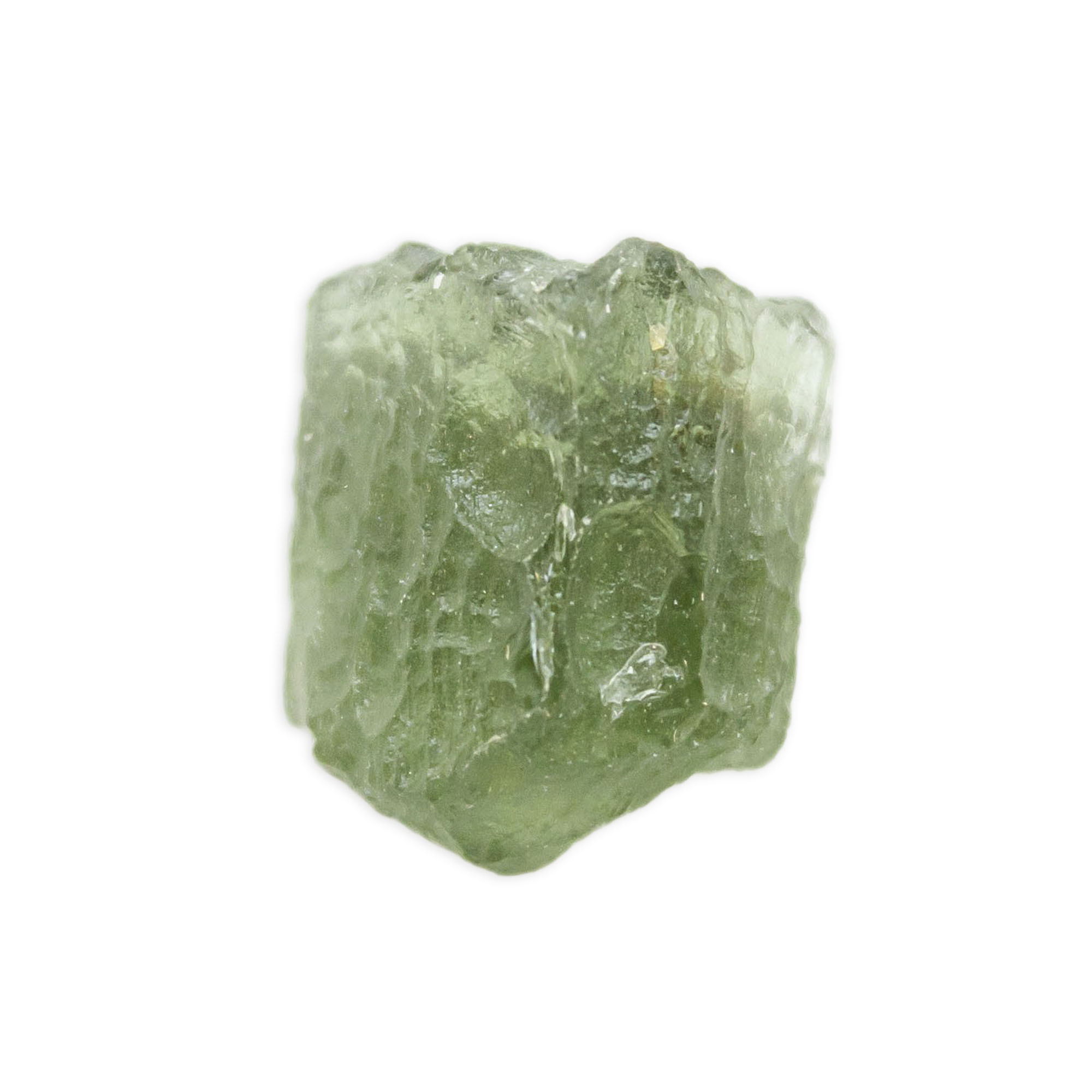 Description: Moldavite. Moldavite is a type of tektite, which is a natural glass that forms when a meteorite impacts the Earth’s surface. It is characterized by its unique green color, often described as a translucent or olive-green shade. It has a distinct, rough texture with natural ridges and indentations.