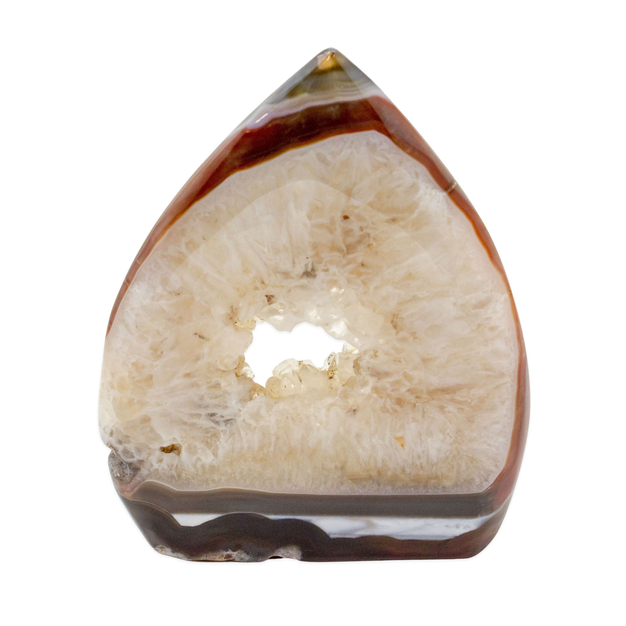 DESCRIPTION: Carnelian Druzy Display Piece. A glassy, translucent stone, Carnelian is an orange-colored variety of Chalcedony, a mineral of the Quartz family. Its color varies from pale pinkish-orange to a deep rusty brown, though it is most known for its brilliant orange and red-orange crystals.