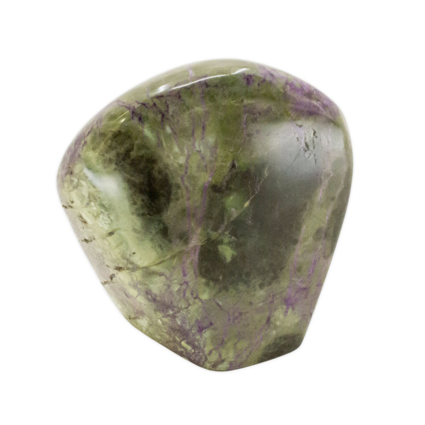 Description: Polished Atlantisite Freeform. Atlantisite is a mixture of Serpentine and Stichtite. Serpentine is a green mineral known for its soothing and cleansing properties, while Stichtite is a purple mineral associated with emotional healing and compassion.