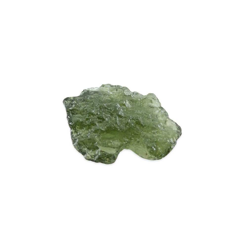 Description: Moldavite. Moldavite is a type of tektite, which is a natural glass that forms when a meteorite impacts the Earth’s surface. It is characterized by its unique green color, often described as a translucent or olive-green shade. It has a distinct, rough texture with natural ridges and indentations.