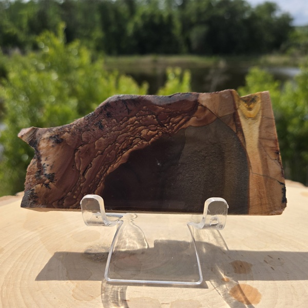 Please note, this is a rough slab. It is not polished on either side. The photos show the slab while wet. You will receive the exact item shown.