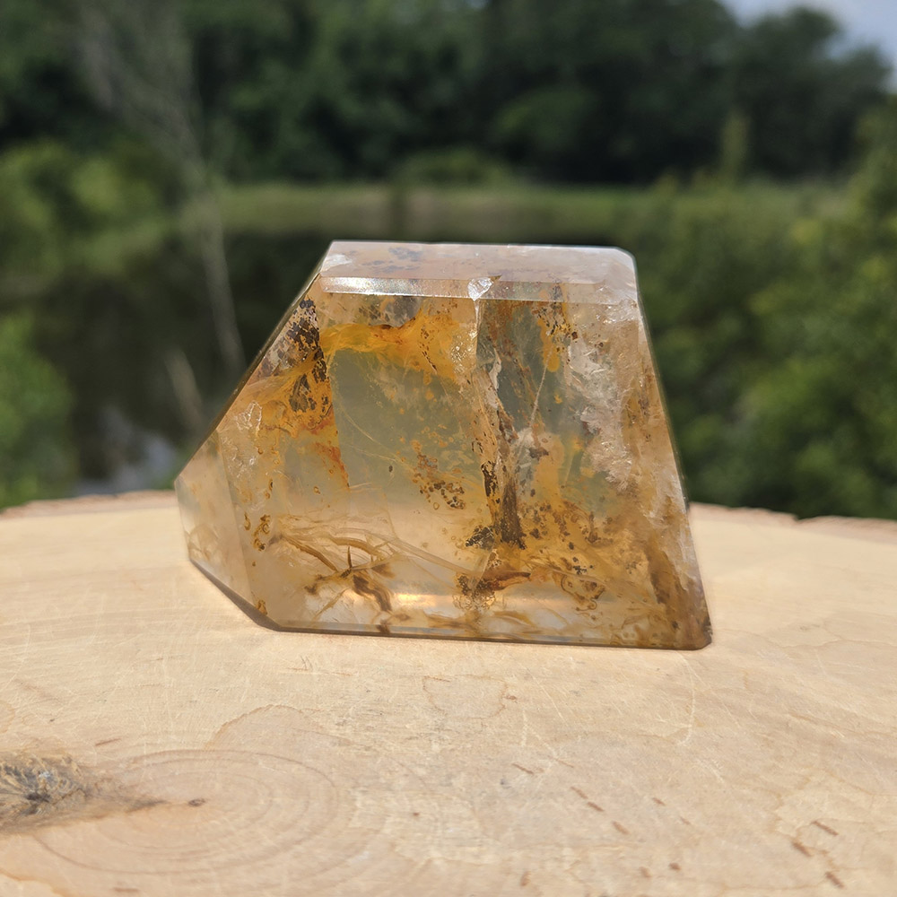Healing: Hematoid quartz is a stone used to clear and focus the mind. It will enhance memory and aid in clarity of thought. It is a “mind cleanser” and will aid in calming emotions to allow for rational thought and decision making. It calms mental stress.