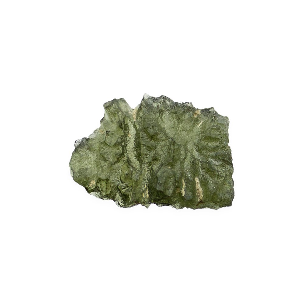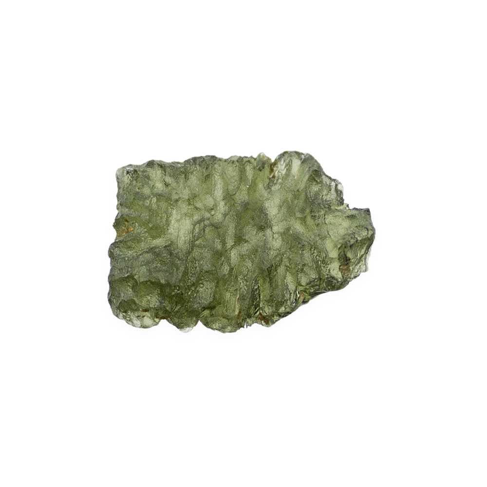 Description: Moldavite Rough. Moldavite is a type of tektite, which is a natural glass that forms when a meteorite impacts the Earth’s surface. It is characterized by its unique green color, often described as a translucent or olive-green shade. It has a distinct, rough texture with natural ridges and indentations.