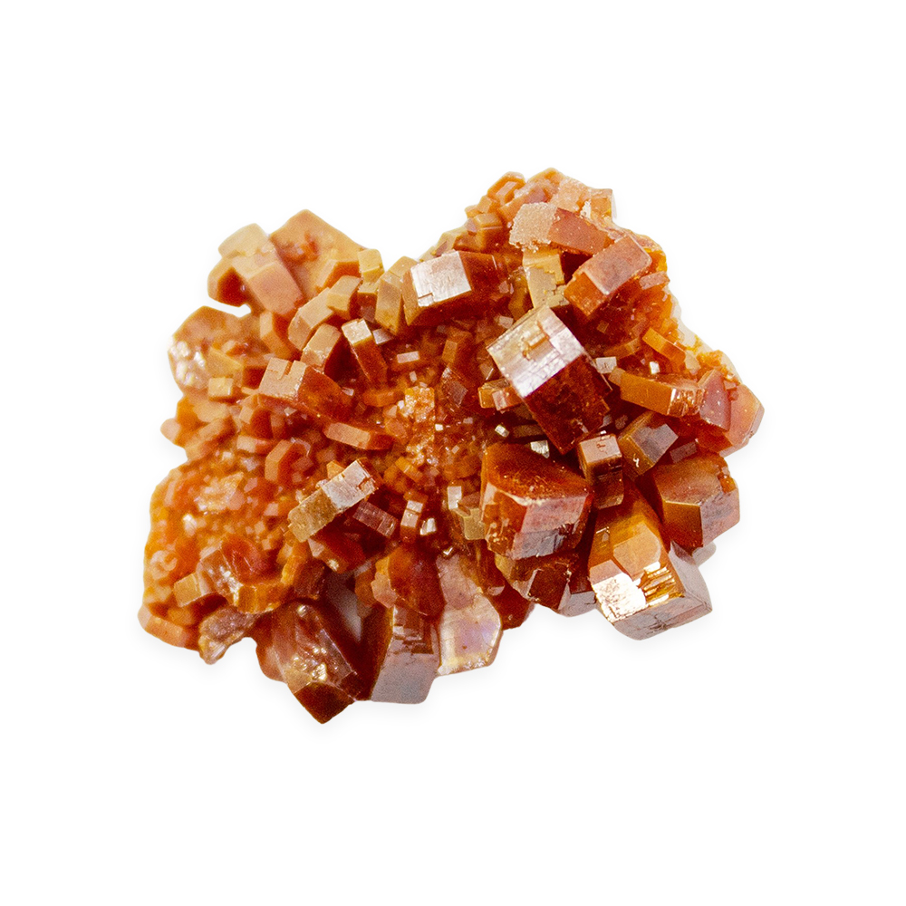 Description: Natural Vanadinite Cluster. Vanadinite is a striking mineral known for its vibrant red to orange hexagonal crystals with a glossy finish. Composed of lead and vanadium, it forms in the oxidized zones of lead deposits and is prized by collectors for its bold color and unique crystal shapes.