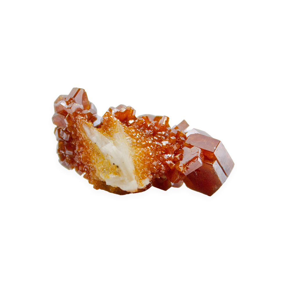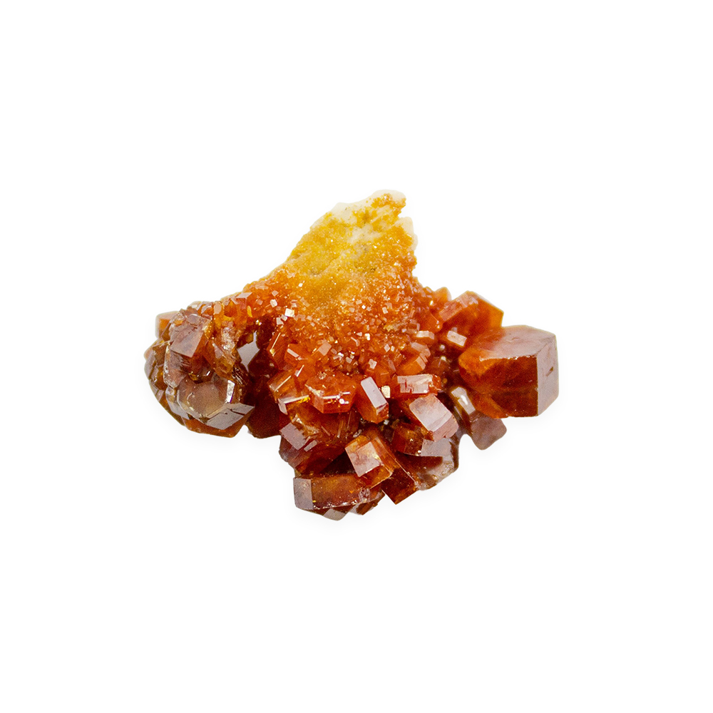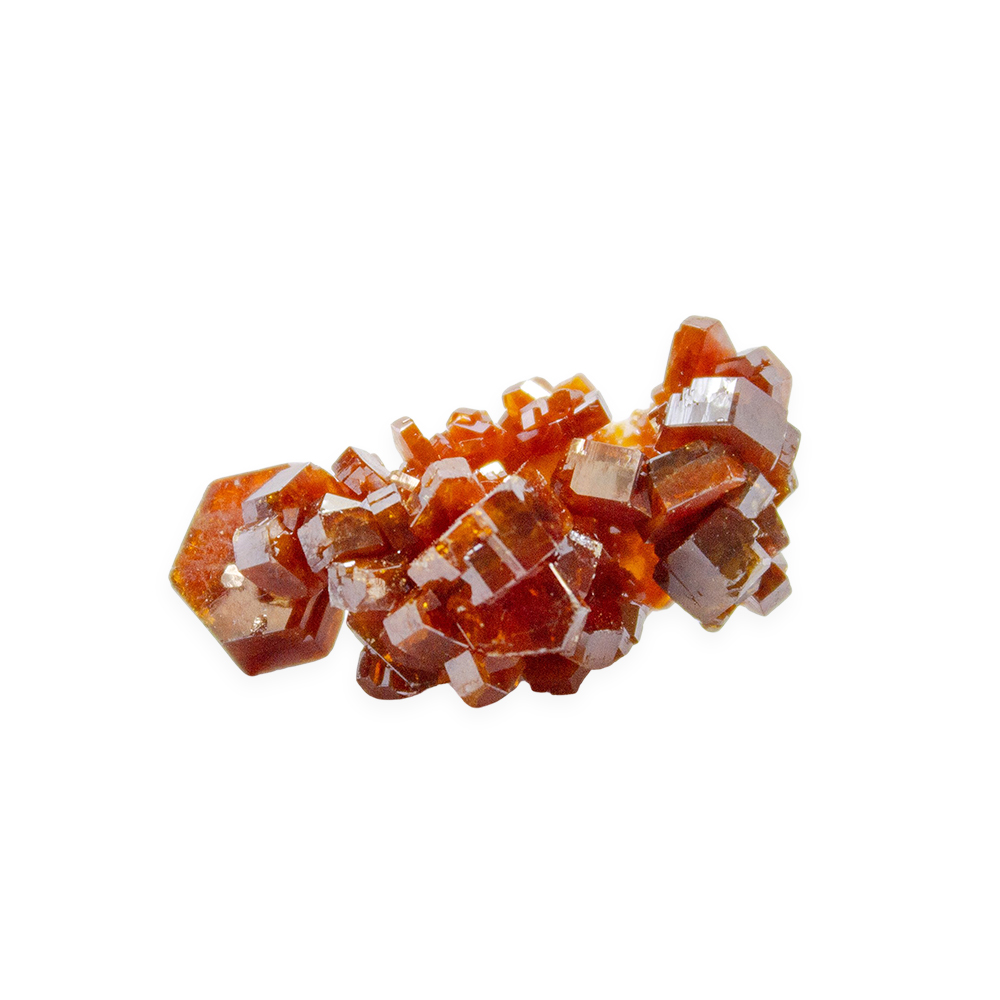 Description: Natural Vanadinite Cluster. Vanadinite is a striking mineral known for its vibrant red to orange hexagonal crystals with a glossy finish. Composed of lead and vanadium, it forms in the oxidized zones of lead deposits and is prized by collectors for its bold color and unique crystal shapes.