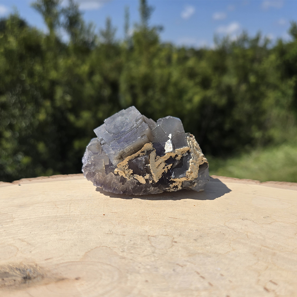 Description: Blue Gray Fluorite Specimen. Fluorite forms in a wide variety of hues, typically purple, green, yellow, blue, and pure form – colorless. It is composed of calcium fluoride and is a member of the Halide family.