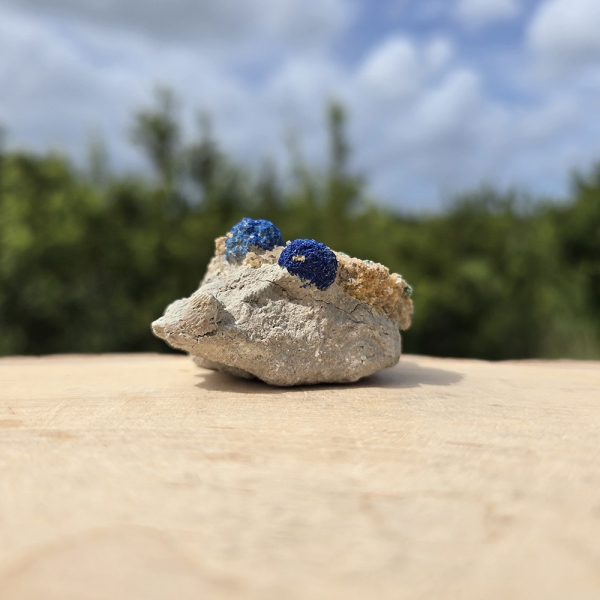 Description: Blueberry Azurite and Malachite on Matrix. Azurite is a deep blue copper carbonate hydroxide mineral. The name “azurite” is derived from the Persian word lazhward, meaning “blue,” reflecting its characteristic color. You will receive the exact item shown.