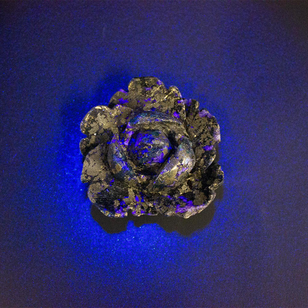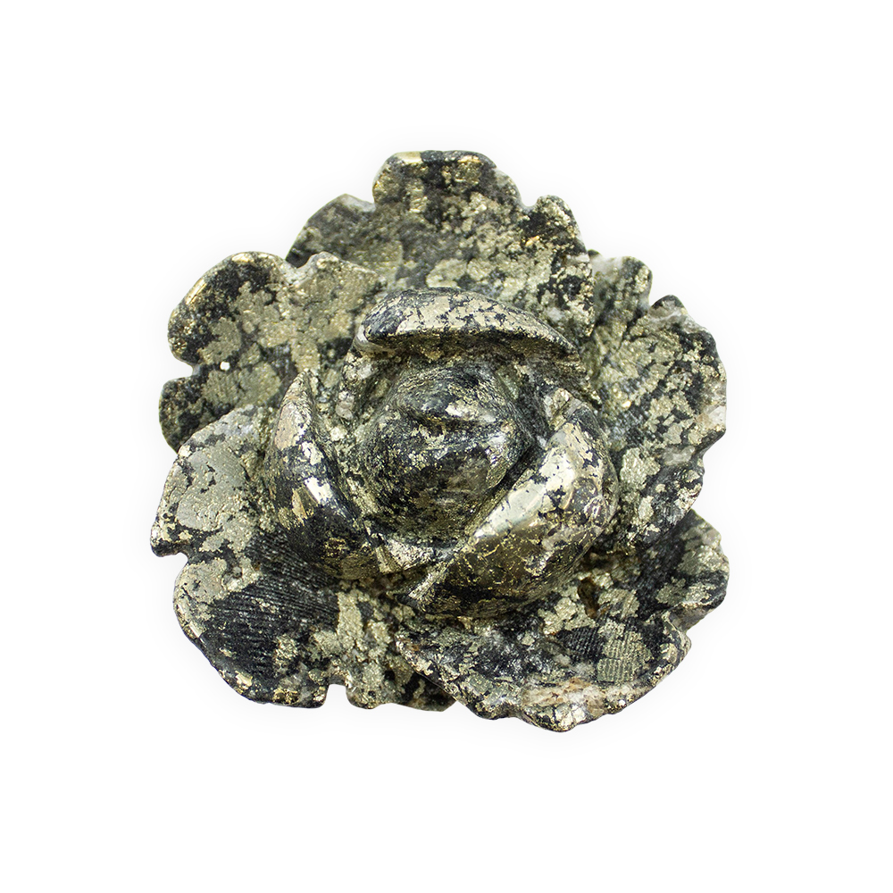 Description: Stunning Black Pyrite Flower. An iron sulfide mineral, Pyrite is commonly found worldwide in various geological formations, from sedimentary deposits to hydrothermal veins, and as a constituent of metamorphic rocks. It is usually pale, brassy-yellow in color, opaque, with a strong, gold-like metallic luster. However, some forms oxidize in moist environments and may appear darker, with a brownish-gold hue or even black.