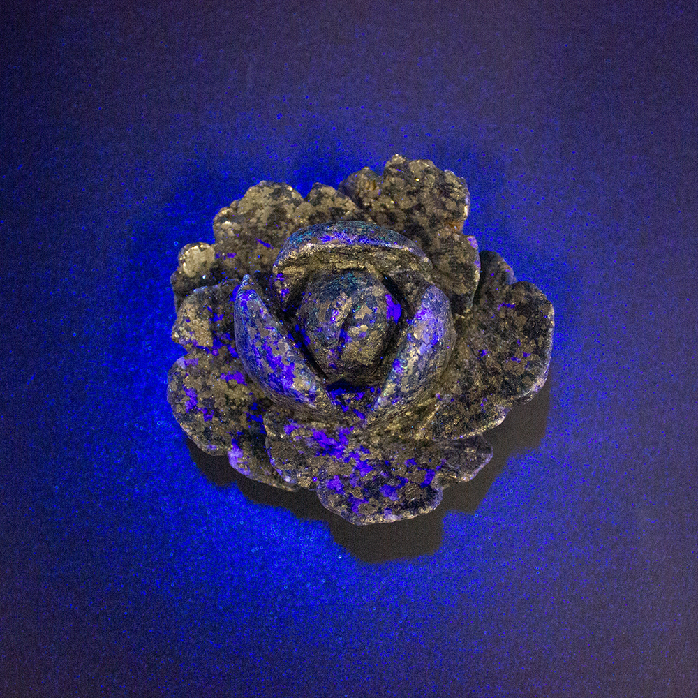Description: Stunning Black Pyrite Flower. An iron sulfide mineral, Pyrite is commonly found worldwide in various geological formations, from sedimentary deposits to hydrothermal veins, and as a constituent of metamorphic rocks. It is usually pale, brassy-yellow in color, opaque, with a strong, gold-like metallic luster. However, some forms oxidize in moist environments and may appear darker, with a brownish-gold hue, or even black.