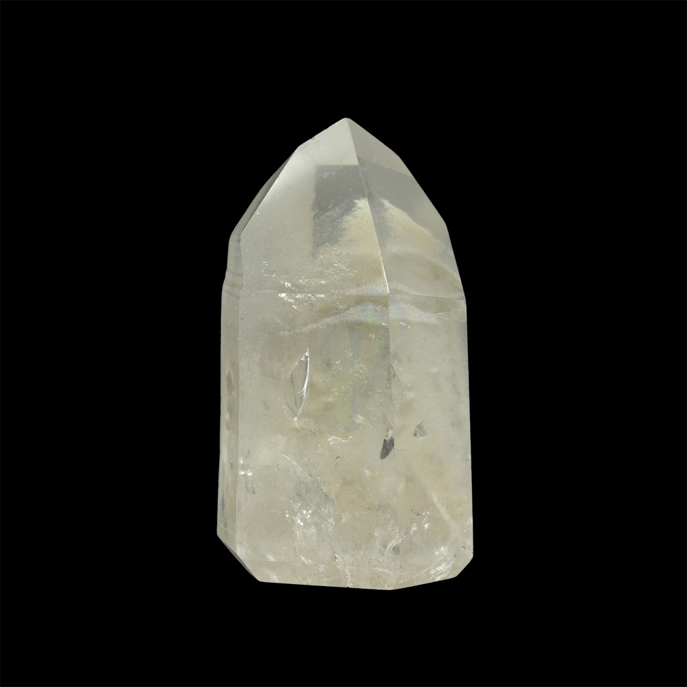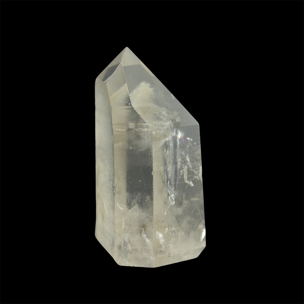 DESCRIPTION: Polished Lemurian Seed Point with Phantom and Rainbow. This crystal is unique, beautiful, and energetic. A phantom contains ghost-like image of another crystal within it that are aligned with outer crystal. A Rainbow crystal contains inclusions or internal cracks that show a rainbow when viewed from an angle.(Please note that most Lemurian Seed crystals have natural flaws on the facet edges.)
