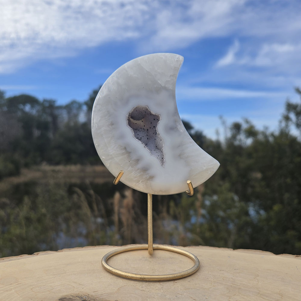 Agate Druzy Moon with Stand