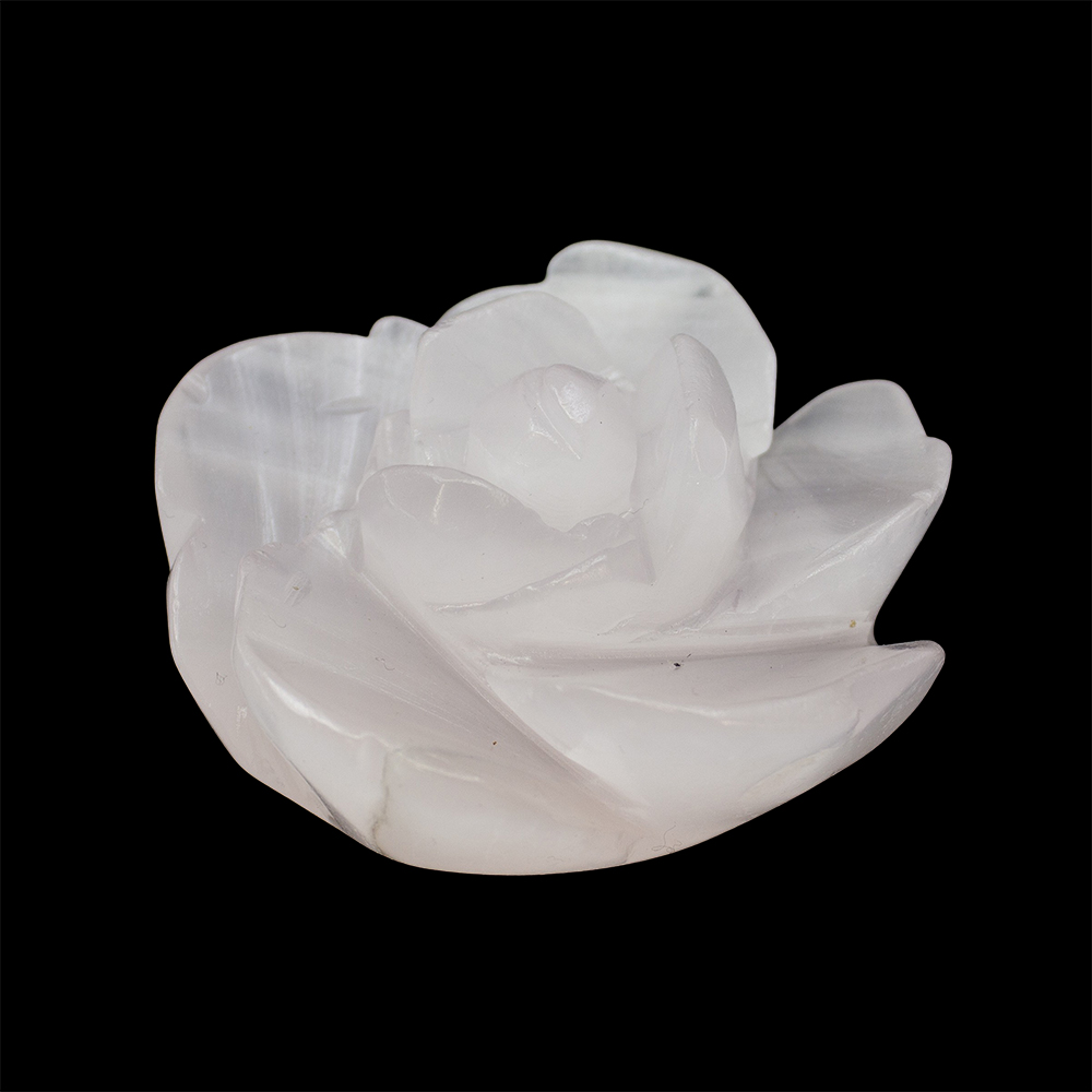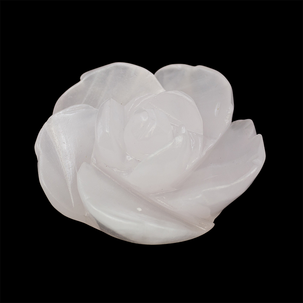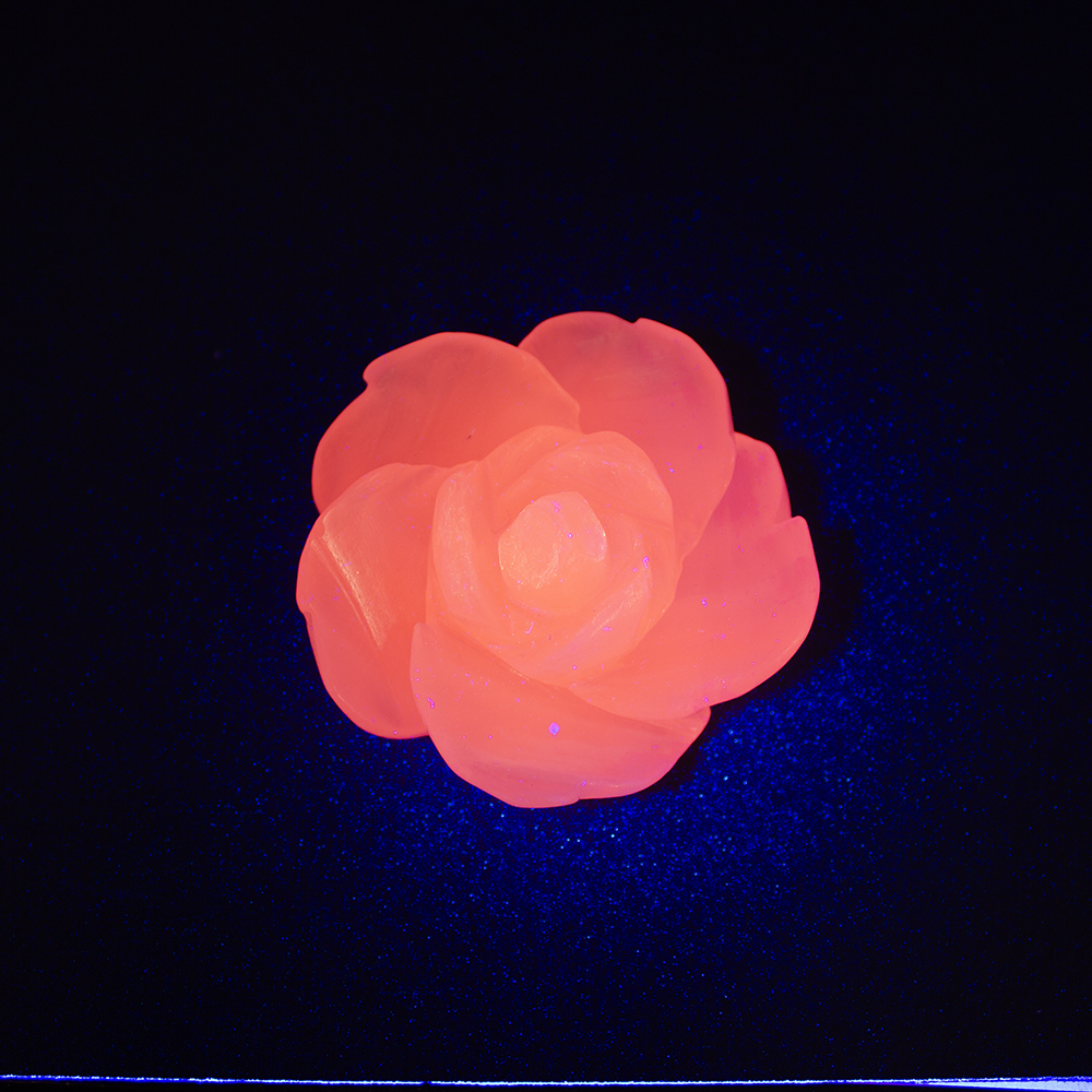 Description: Pink Mangano Calcite Carved Rose. Pink Mangano Calcite (often just called Mangano Calcite) is a soft pink variety of Calcite that gets its color from manganese. It’s one of those stones that are described as gentle but powerful. Under ultraviolet light, Pink Mangano Calcite glows a vivid neon pink, which is one of its most distinctive and fun features.