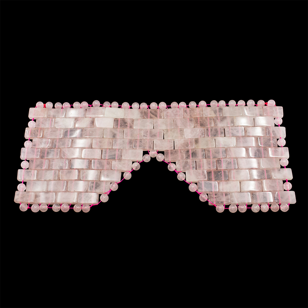 DESCRIPTION: Rose Quartz Eye Mask. Rose Quartz, a silicon dioxide crystal, is one of the most common varieties of the Quartz family. Its name is derived from its soft rose color, which ranges from very pale pink to deep reddish pink.