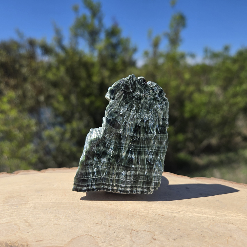 Meditation: Seraphinite is a calming and relaxing stone. Its energy flows gently from the past to the future. It brings calmness to the flowing of time. It relaxes your spirit. It calms your mind, and it brings peace of acceptance to your soul.