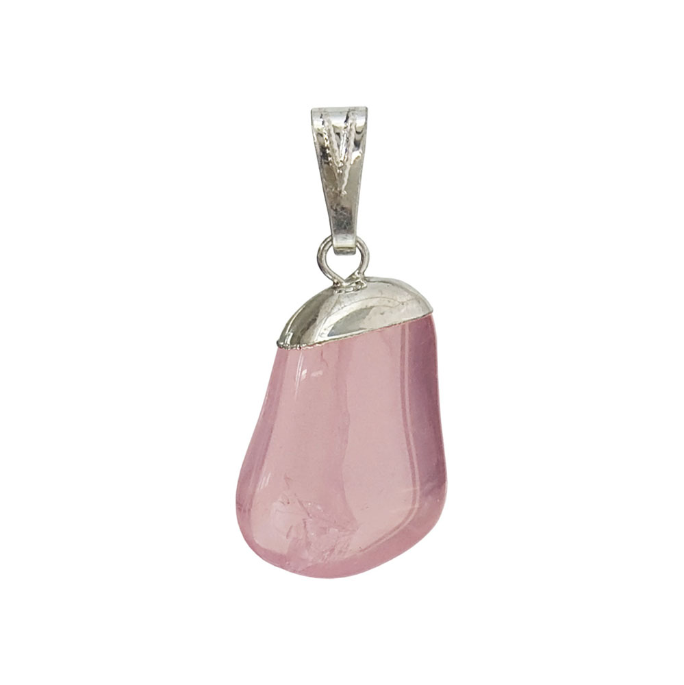 DESCRIPTION: Rose Quartz Tumbled Stone Pendant. With its gentle pink essence, the fair and lovely Rose Quartz is a stone of the heart, a Crystal of Unconditional Love. It carries a soft feminine energy of compassion and peace, tenderness, healing, nourishment, and comfort.