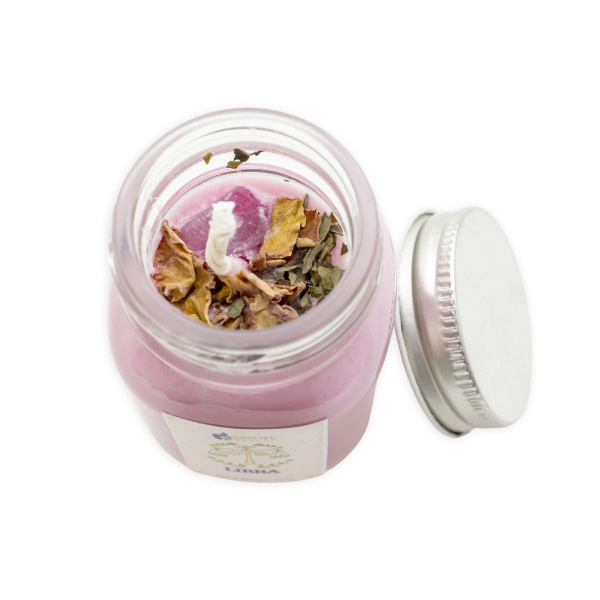WHAT’S INSIDE: Inside this wonderful spell candle is 100% natural soy wax, wick, Spring Blossom Scent, dressed with Pink Tourmaline, Rose Petals, and Mint. Hand poured with pure intention. The wicks are constructed from natural flat cotton threads interwoven with paper threads that produce a rigid structure. They are lead and zinc free. The approximate burn time is 7 – 9 hours. Both the herbs and crystals are associated with Libra.