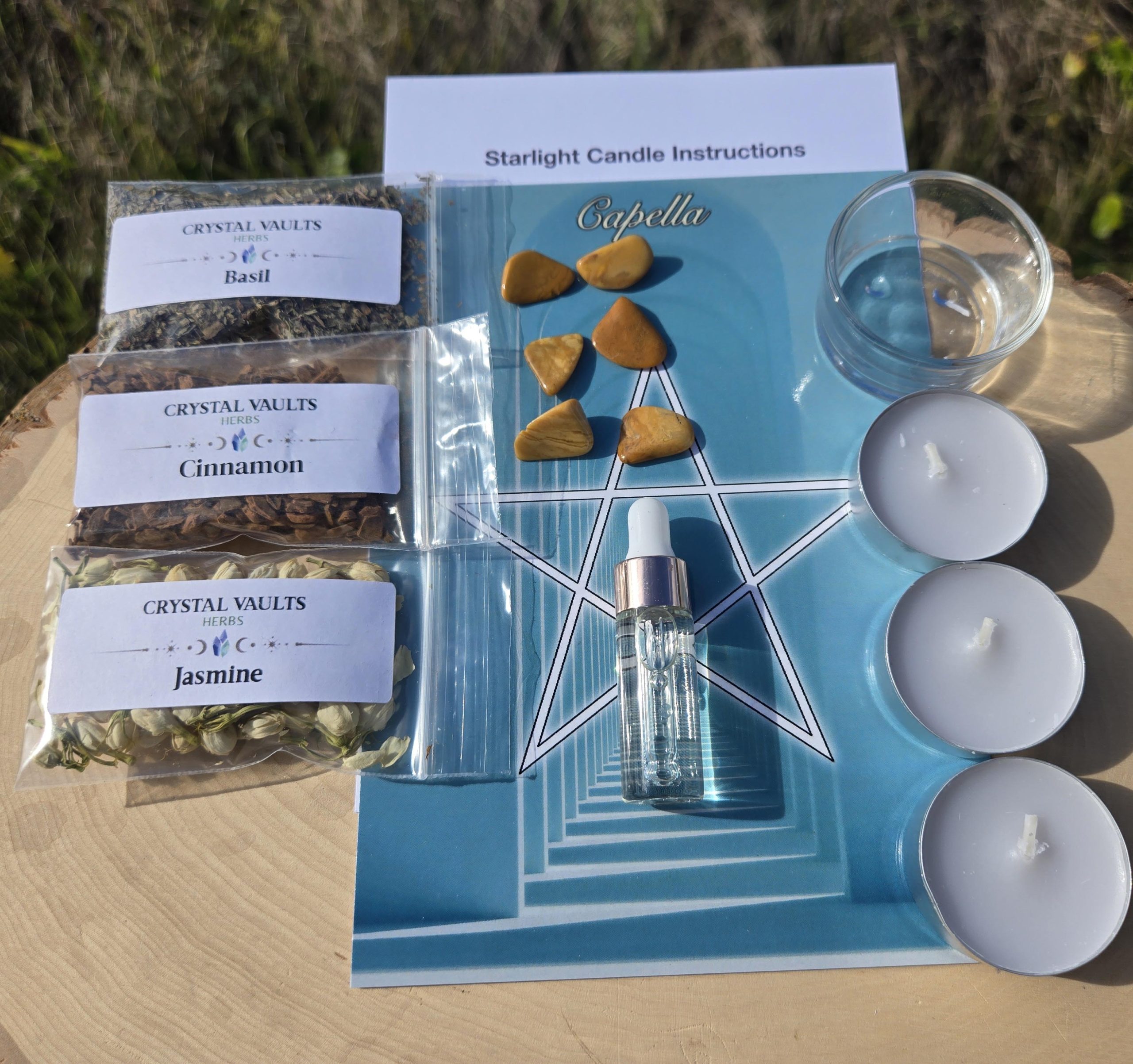 - Three packets of Capella Aligned herbs used to activate the candles once they are aligned: Jasmine, Cinnamon and Basil