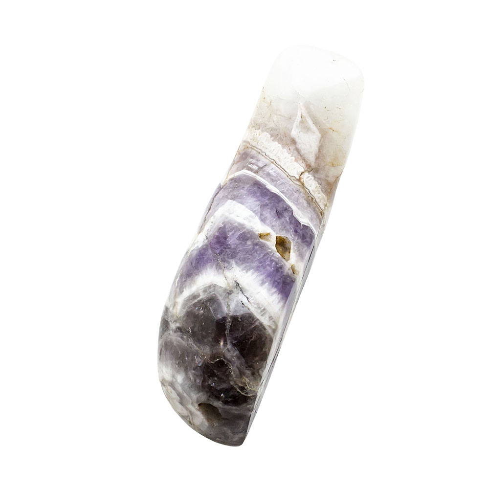 Description: This is a highly polished Chevron Amethyst Handheld Massage Wand. Called the “all-healer,” Amethyst is one of the most effective crystals for healing people, plants, and animals. Amethyst is especially supportive of the emotional body, bringing those overworked, overstressed, or overwhelmed back to their center. The photo is typical of the one you will receive. These may contain fractures and rough spots natural to the stone.