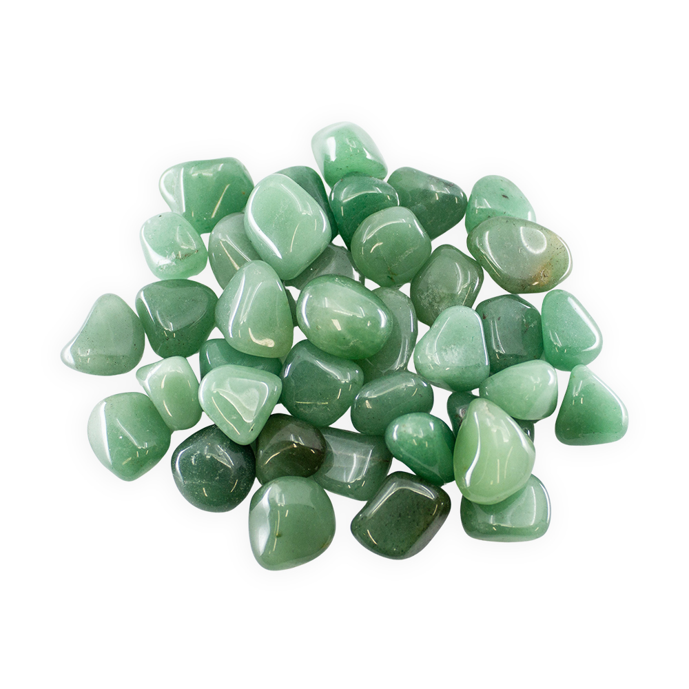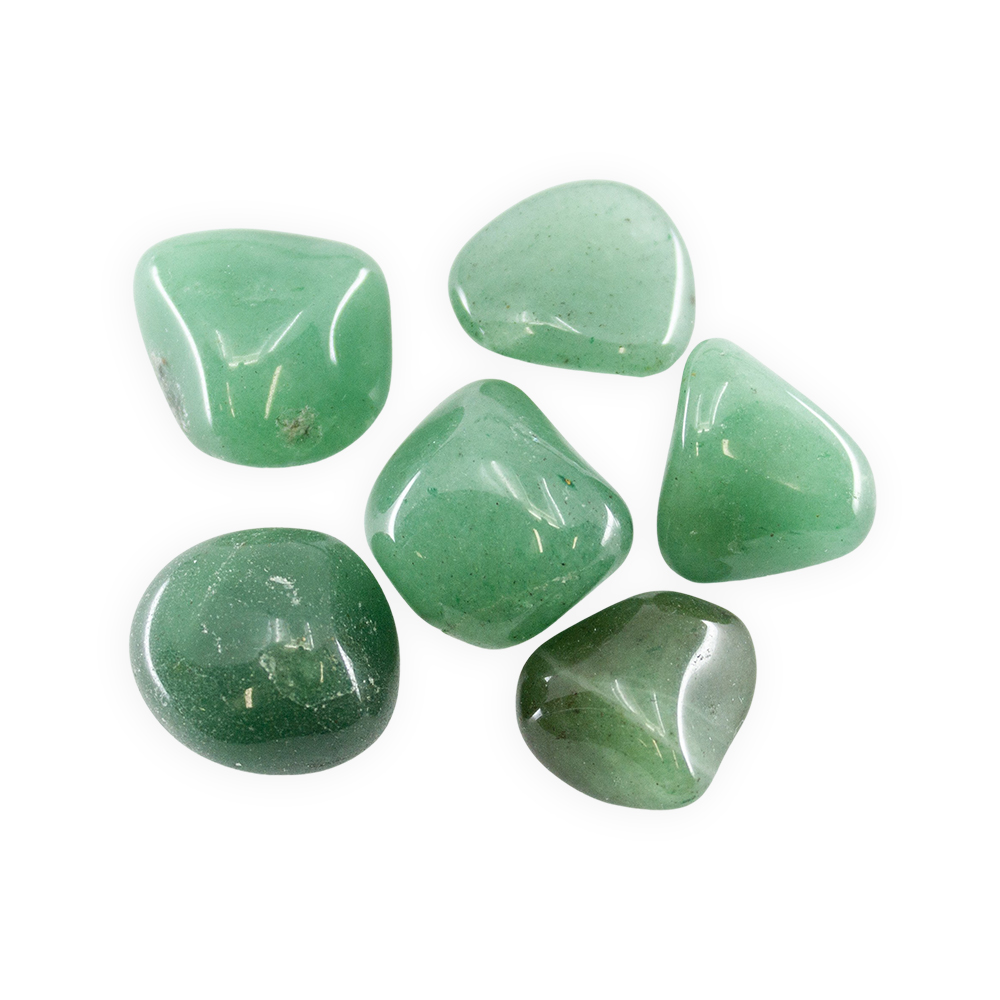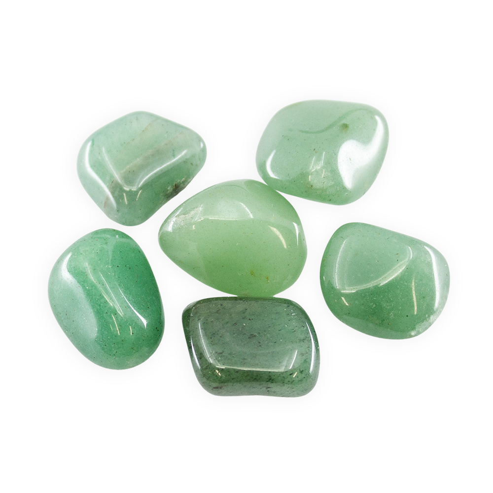 Description: Green Aventurine Tumbled Set. Aventurine is a variety of Quartz characterized by bright inclusions of Mica or other minerals that give a shimmering or glistening effect to the stone, referred to as aventurescence, especially notable when tumbled or polished.