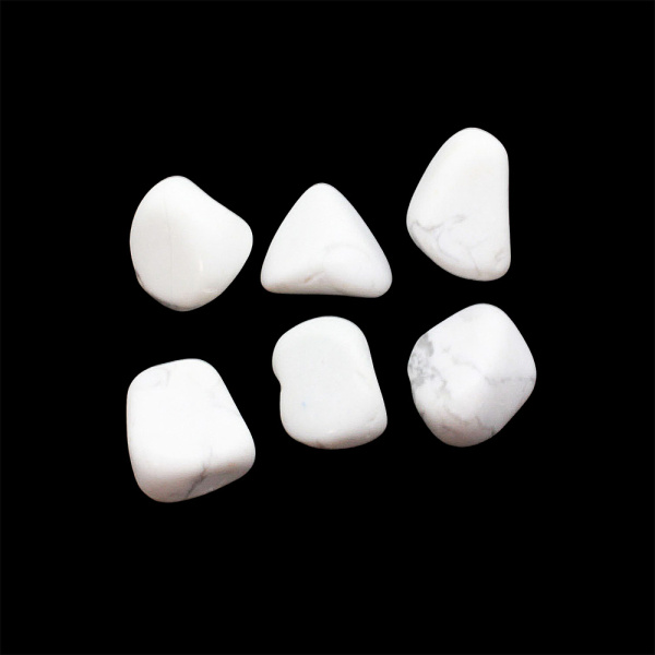 Description: Polished Howlite tumbled stones. Howlite reinforces memory and stimulates the desire for knowledge. It helps relieve stress and calm rage fits. Howlite urges us to overcome our patterns of selfishness and limiting behavior.