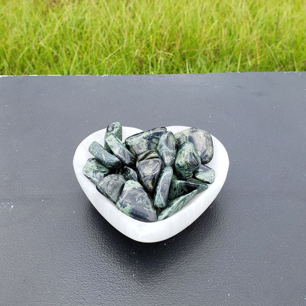 Primary Uses: Kambaba Jasper is known for its ability to calm and soothe emotional upheaval. For those sensitive to its vibration, it creates a special aura, a pleasant sensation as it irradiates throughout the body. It invites feelings of compassion and patience, humility, and even generosity. Kambaba is particularly conducive to opening the heart, increasing the ability to love the self and others more deeply, and being open to receiving love in return.
