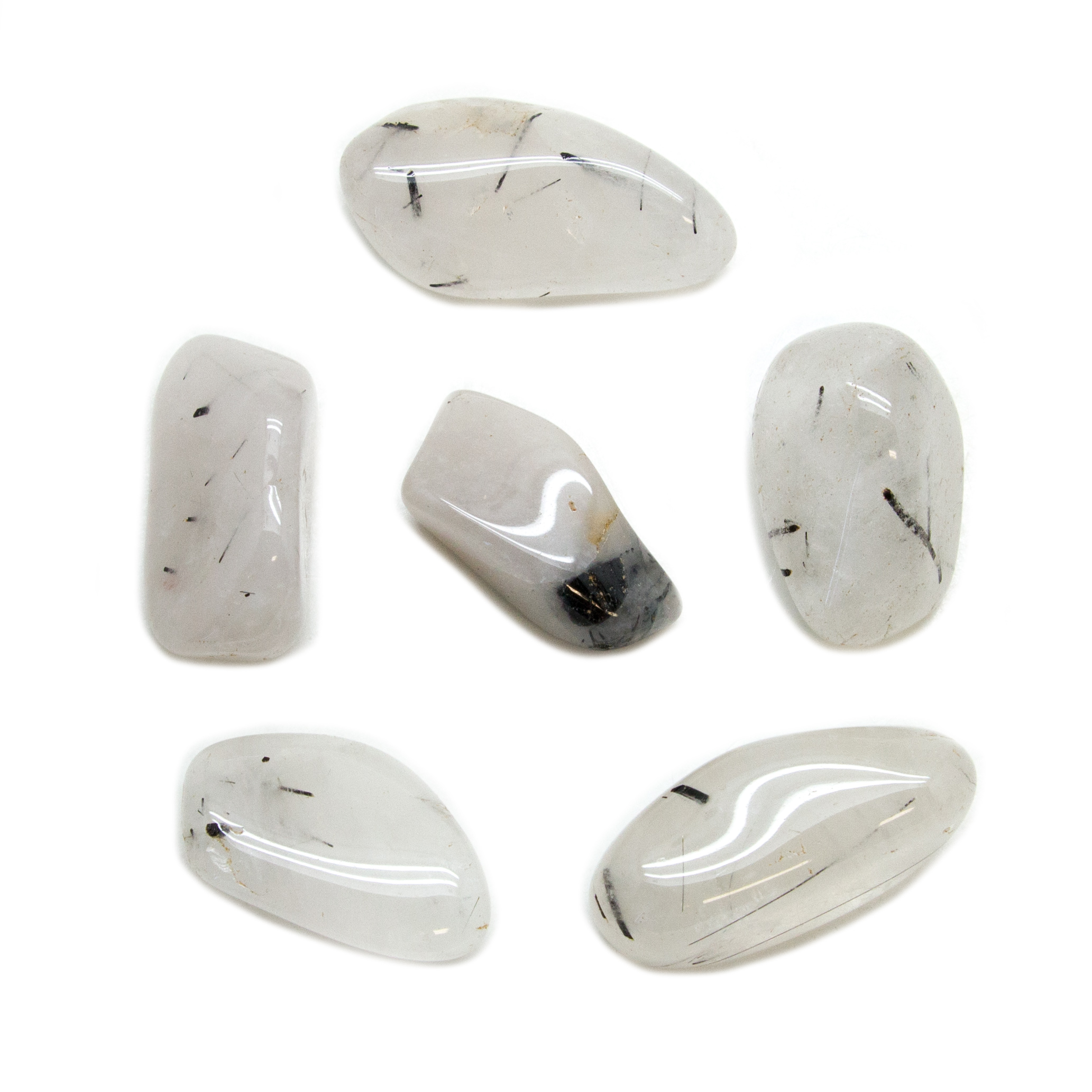 Description: These quartz tumbled stones contain the powerful grounding crystal of Schorl, also known as Black Tourmaline. They are highly polished and very beautiful. The picture shows the typical set you will receive.