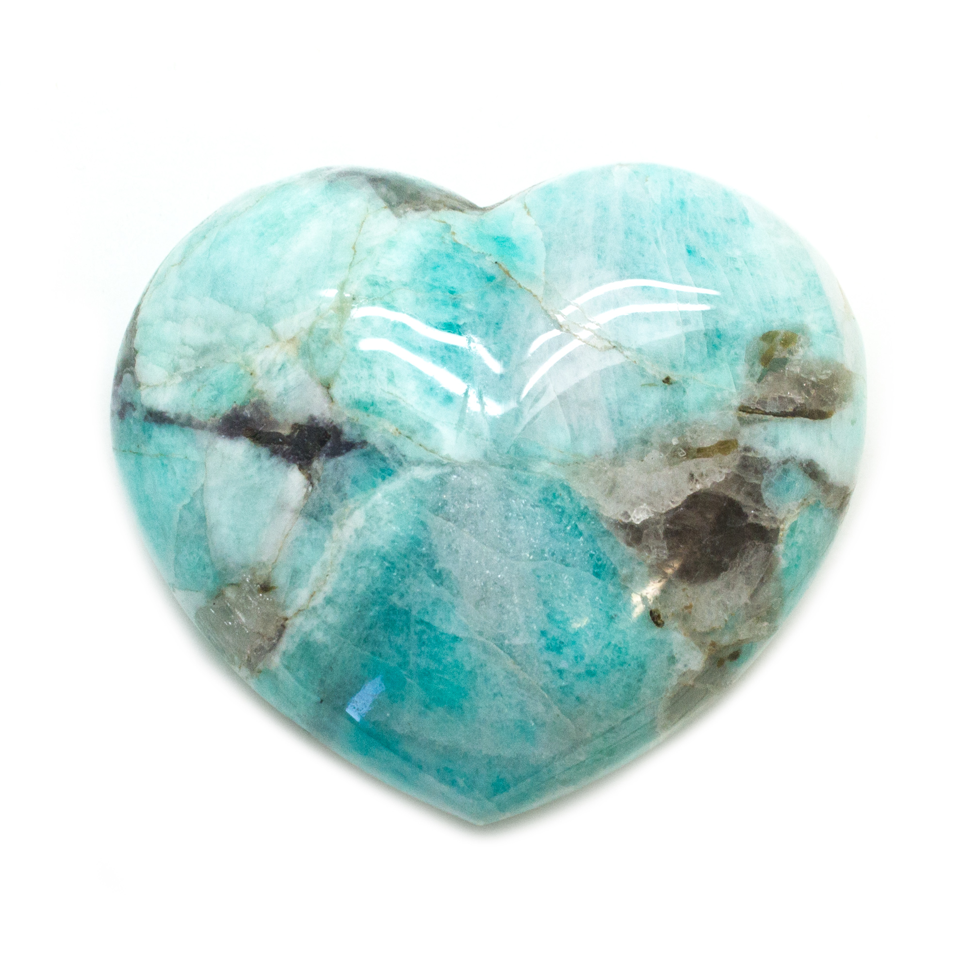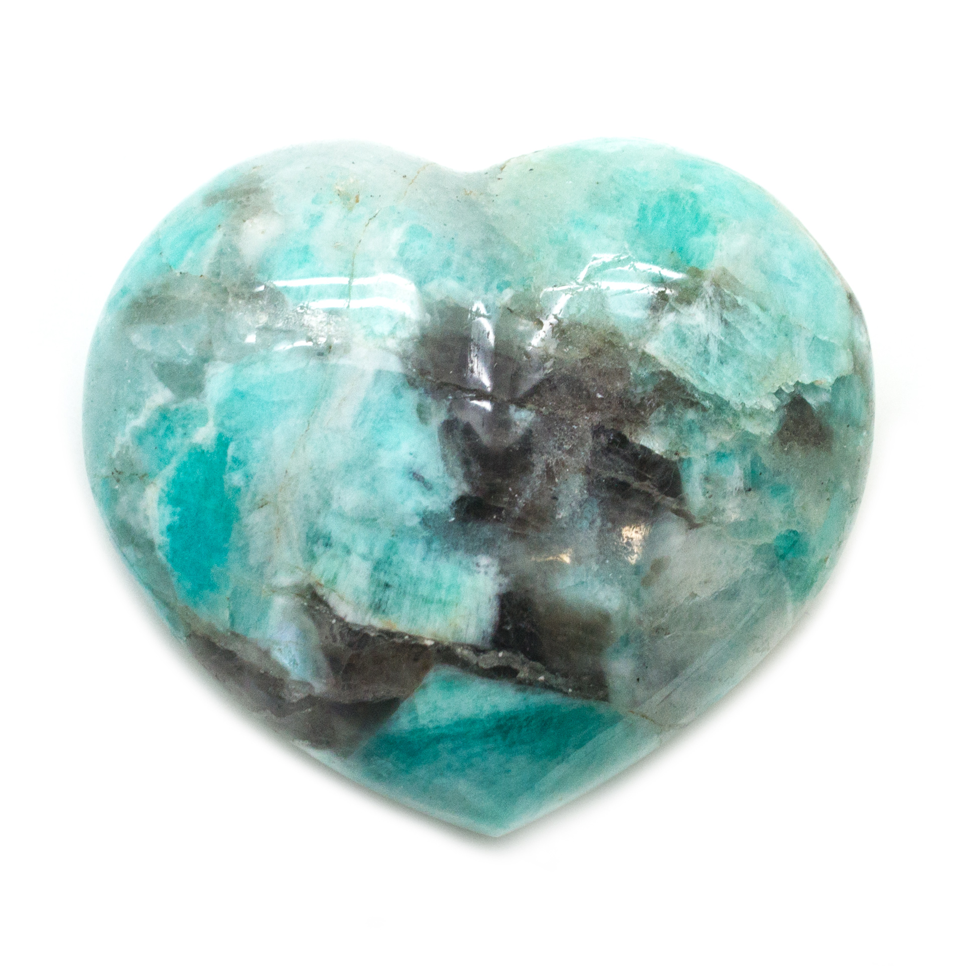 Description Highly polished turquoise-colored amazonite heart. The picture is representative of the one you will receive. These hearts are high quality with excellent polish and excellent color.