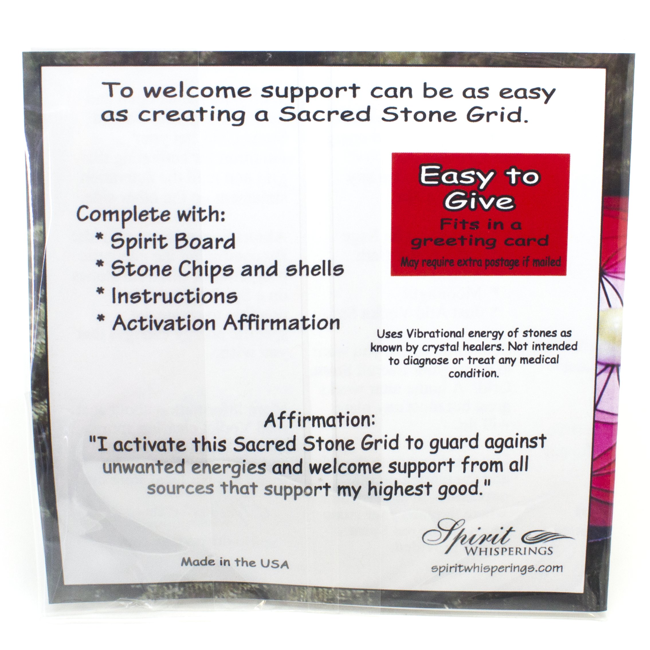 Description: To welcome support can be as easy as creating a Sacred Stone Grid. Elegant grid design. Easy to give, fits in greeting card.