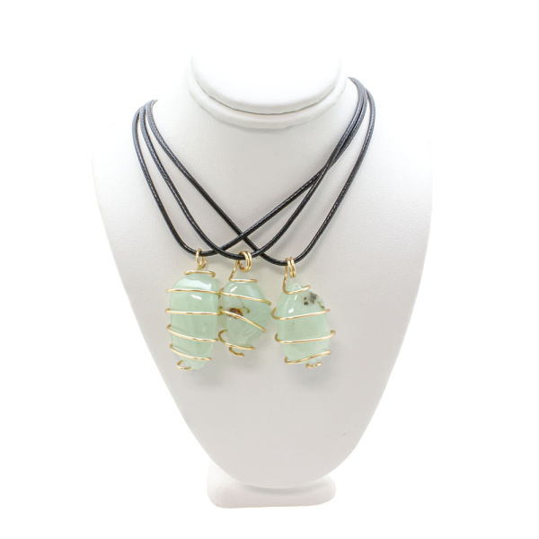 Description:Â Prehnite Spiral Wrapped Pendant. This stone portrays a beautiful olive color. Prehnite promotes unconditional love and stimulates spiritual growth. It is a wonderful stone for bringing peace, joy, and harmony into one’s life.