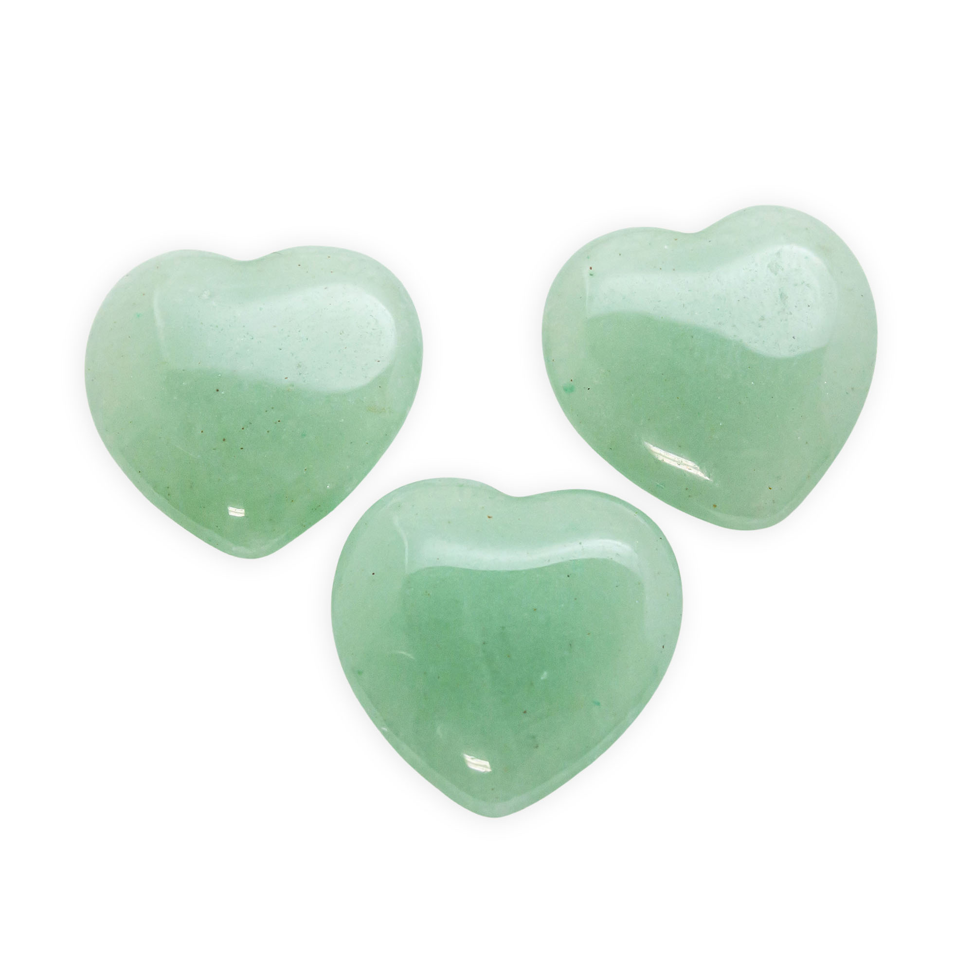 Description: Green Aventurine Heart. Aventurine is a variety of Quartz characterized by bright inclusions of Mica or other minerals that give a shimmering or glistening effect to the stone, referred to as aventurescence, especially notable when tumbled or polished.