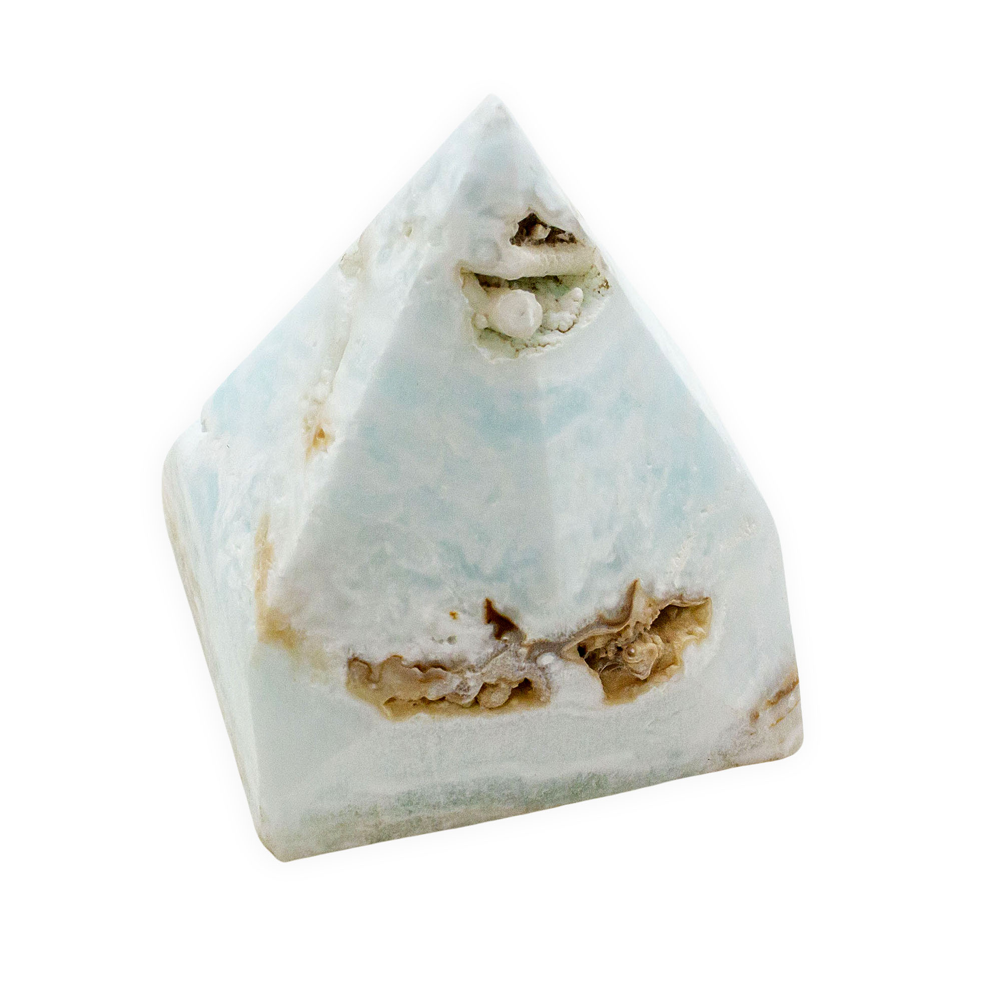 A unique Blue Caribbean Calcite Point. May contain natural cracks, fractures, or druzy pockets. Caribbean blue calcite is a combination of blue Calcite and brown Aragonite.