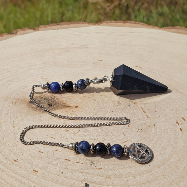Black Obsidian Pendulum with Pentacle Beaded Chain