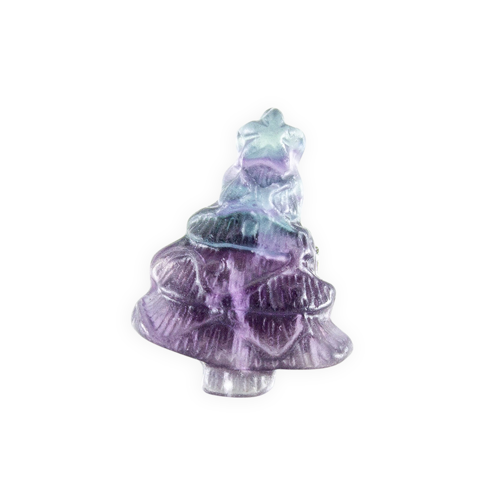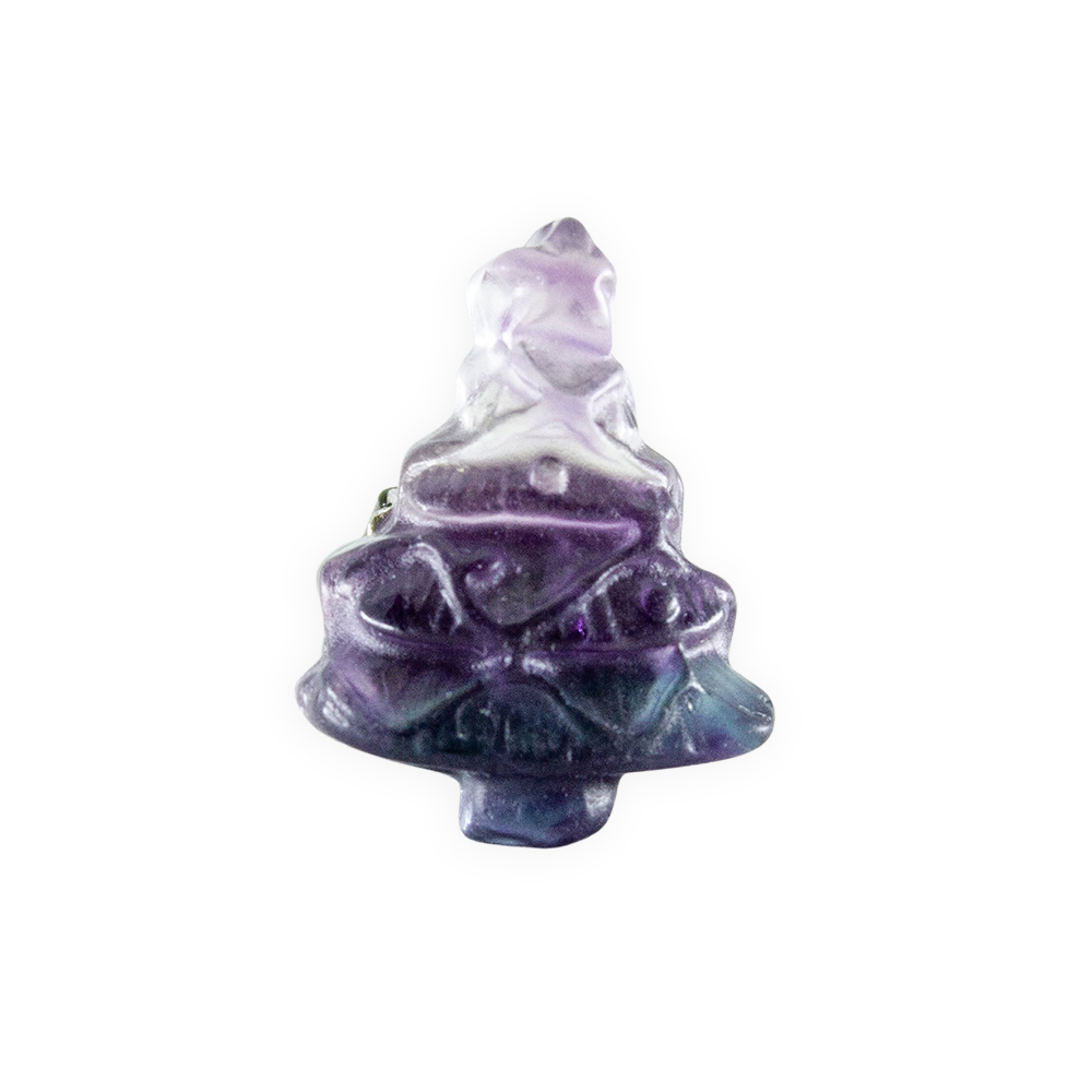 Description: Fluorite Christmas Tree Car Vent Clip. Fluorite forms in a wide variety of hues, typically purple, green, yellow, blue, and pure form – colorless. It is composed of calcium fluoride and is a member of the Halide family.