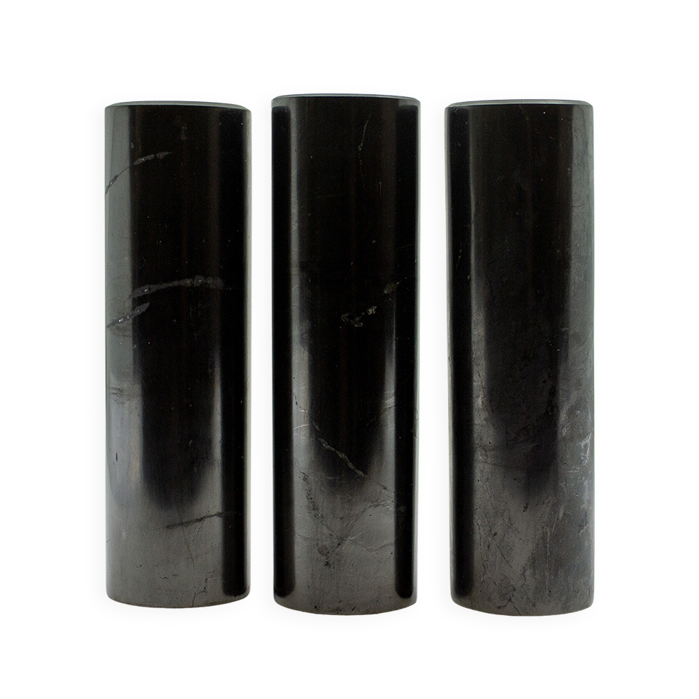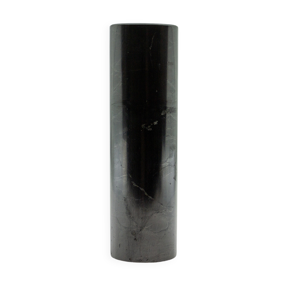Description: Shungite Harmonizer Rod. This stone does contain natural cracks, fractures, and marks. Shungite is a form of elemental carbon, just like a diamond. It has a natural mirror effect and is jet black.
