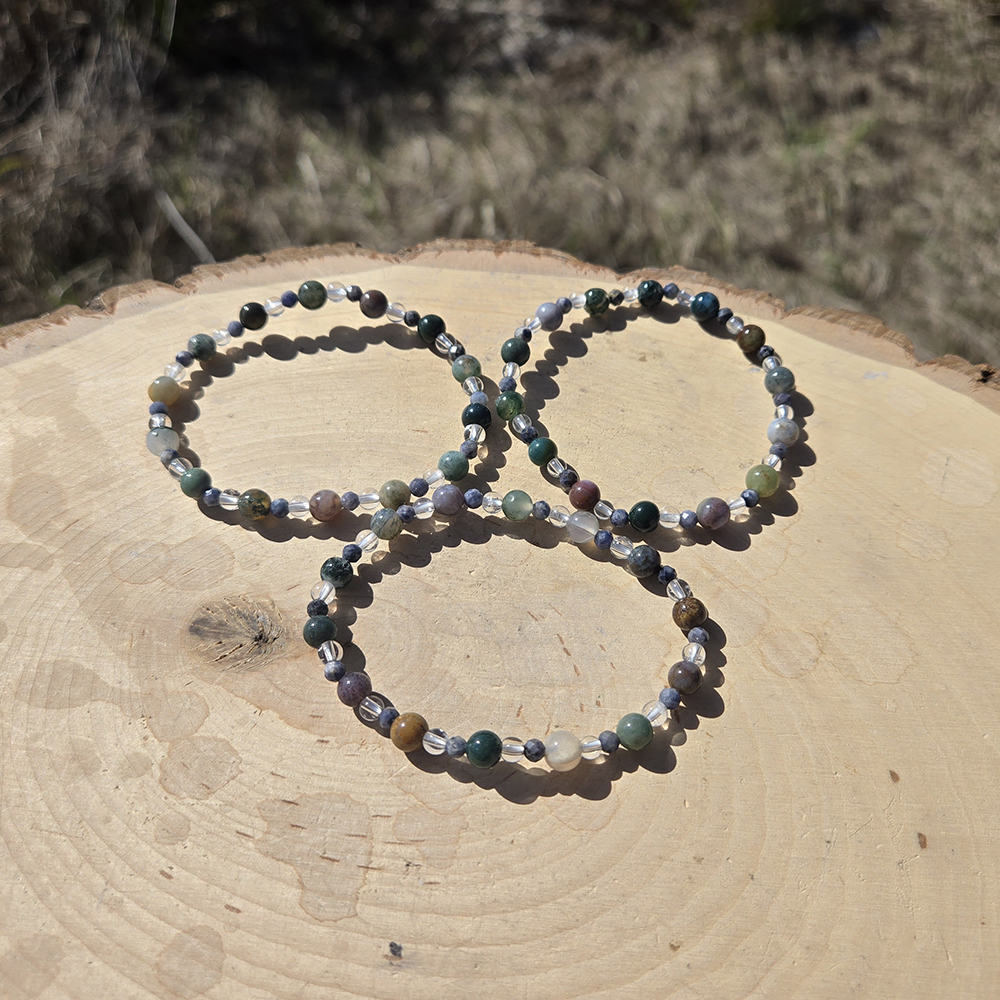 Primary Uses: By adding this attractive Taurus Zodiac Crystal Bracelet into your daily attire, you can benefit from the combined energies of the selected stone. Grounding qualities and new beginnings of the Moss Agate, balance, harmony, and inner peace of the Clear Quartz, and the self-discipline and mental focus of the Sapphire. Perfect for layering with other favorites or wearing alone.
